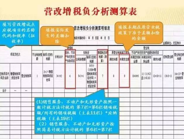 请按照相应的增值税税率和营业税税率可以根据带出的应税项目代码及名称来选择填写。纳税人兼营此次营改增四大行业的应税行为,应分项目填报《测算明细表》,即多项应税行为分行填报对应“应税项目代码及名称”及相关栏次数据。