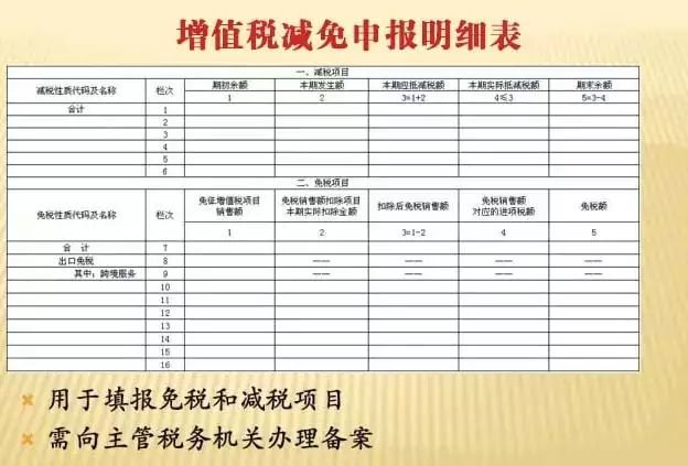 注意:有些减免税项目是必须向主管税务机关备案后才能填写的。